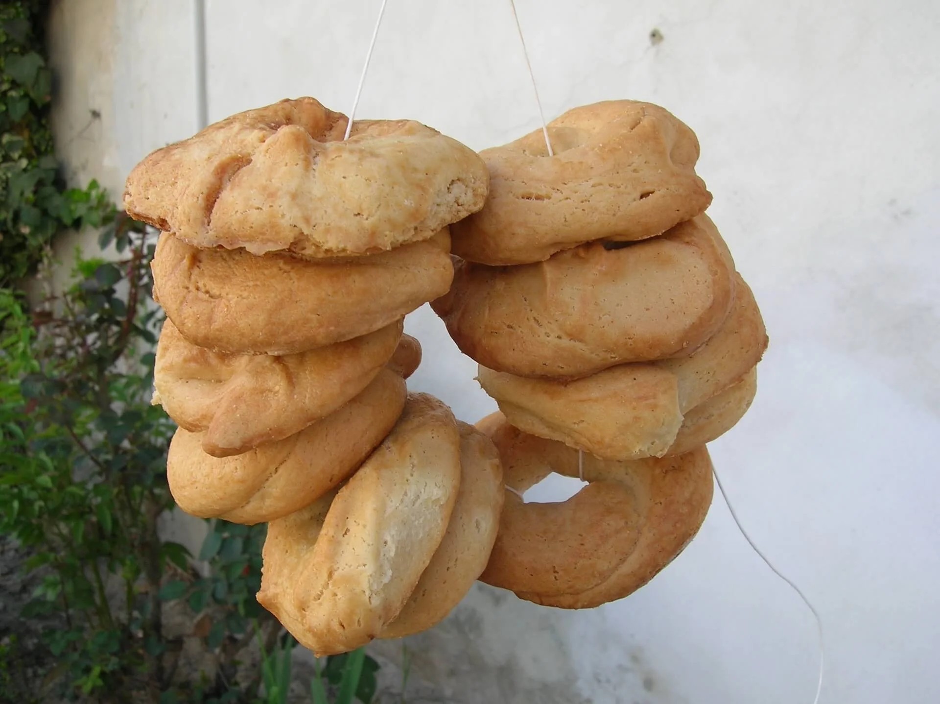 Sono venduti, sempre come la tradizione vuole, legati in collane di undici pezzi secondo uno schema rimasto identico da decenni: cinque ciambelle sono infilate con la parte piatta rivolta nello stesso verso e altre cinque con la parte piatta in verso opposto. L’undicesima è usata come fermaglio e ad essa si legano i capi dello spago; così formata la collana, e appesa all’estremità opposta della ciambella fermaglio, presenta tutte le ciambelle con la parte piatta rivolta verso il basso. Dettaglio, questo della formazione delle collane, non trascurabile, che rimanda all’abitudine di regalarle ai cresimandi. Assurgevano a elemento decorativo di un giorno di festa che sarebbe diventato indimenticabile, l’aspetto estetico non poteva essere lasciato al caso.